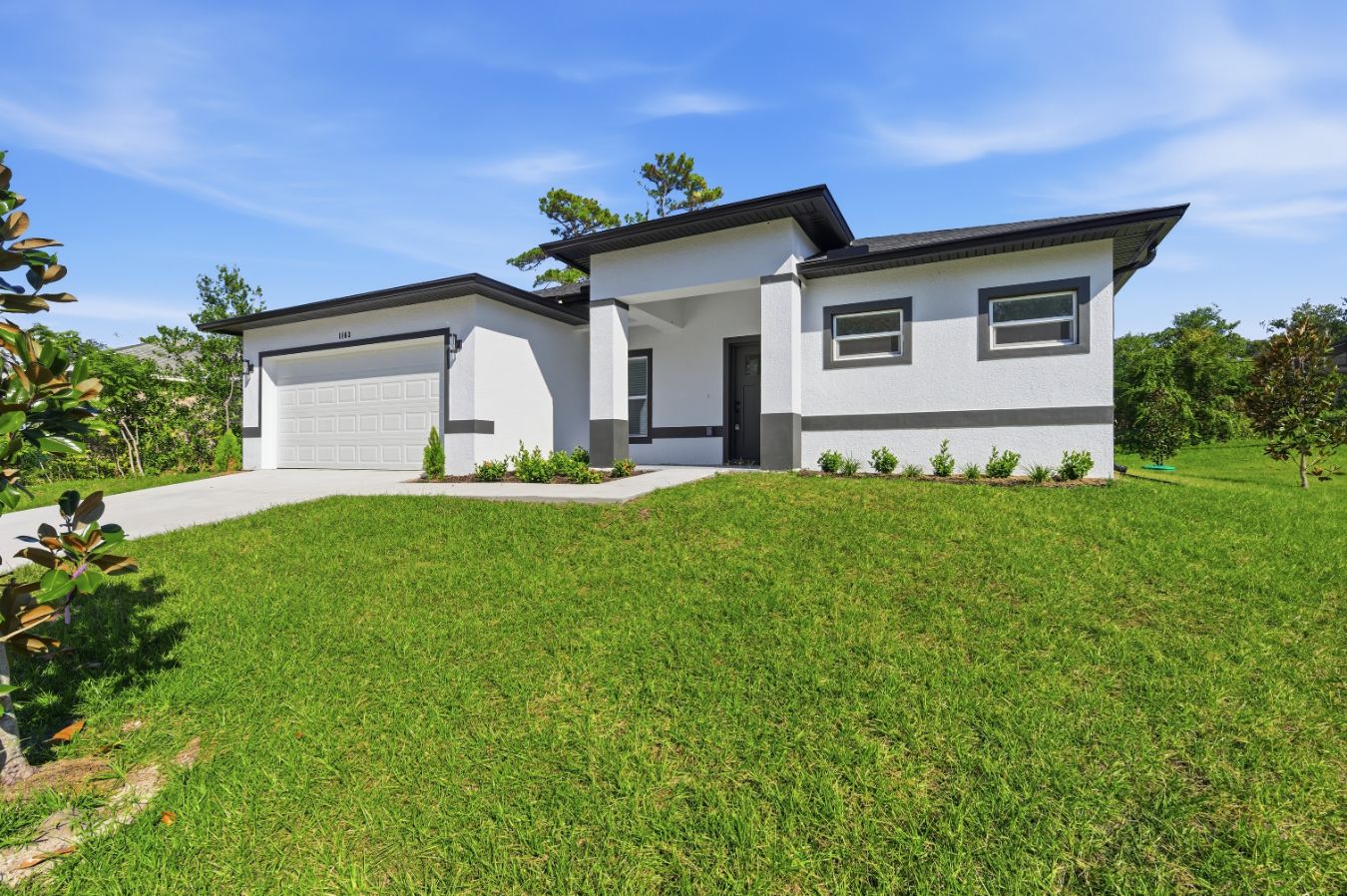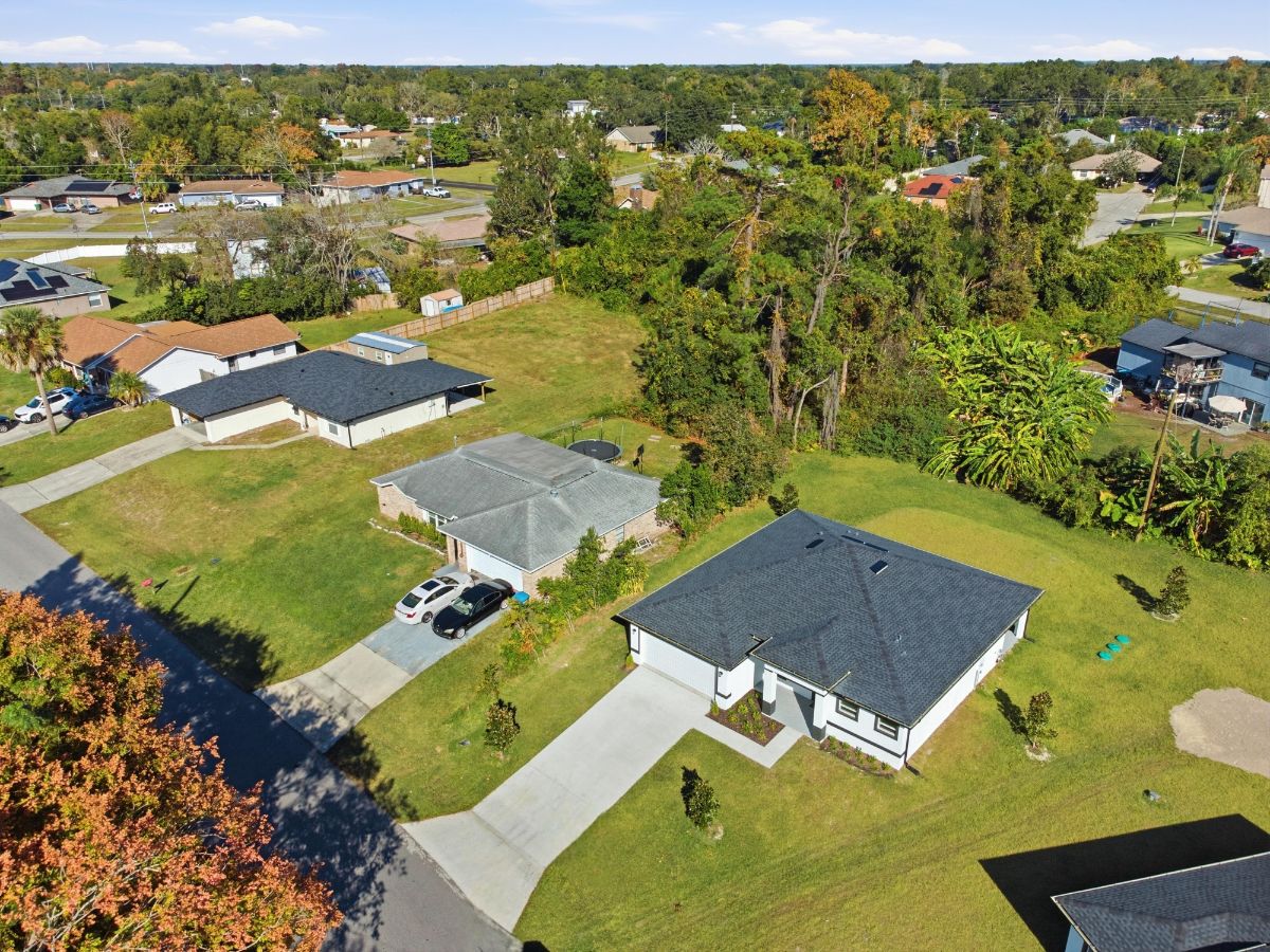 A Modern Oasis in Deltona, Brand new Home 3 Beds | 2 Baths | 1,600 SqFt Living | 2,272 SqFt Total | No HOA or CDD Step into elevated living with this brand-new, modern one-story masterpiece designed with exceptional style, comfort, and forward-thinking functionality in mind. Key Features That Set This Home Apart: - 9'4" bearing walls – offering soaring ceilings and a true sense of openness --fiberglass front door – energy-efficient with zero heat transfer and high-end curb appeal -Vinyl double-pane Low-E windows – energy-saving, noise-reducing, and UV-protective. 3 spacious bedrooms & 2 luxurious bathrooms - Gourmet kitchen with quartz countertops, large center island & stainless steel appliances - Soft-close cabinets & bold modern black accents - Elegant porcelain tile flooring throughout - Private lanai with access from both the master suite and kitchen – the perfect indoor-outdoor retreat - Recessed lighting, ceiling fans, and a spacious 2-car garage with opener - Built with private septic – save significantly on utilities - NO HOA / NO CDD fees – enjoy full ownership freedom! Located just minutes from I-4 and only 35 miles from Downtown Orlando, this home offers peaceful suburban living with quick access to the excitement of the city. Ready to tour this outstanding home. Contact me today—this opportunity won’t last long! Ask for our list of new constructions homes.