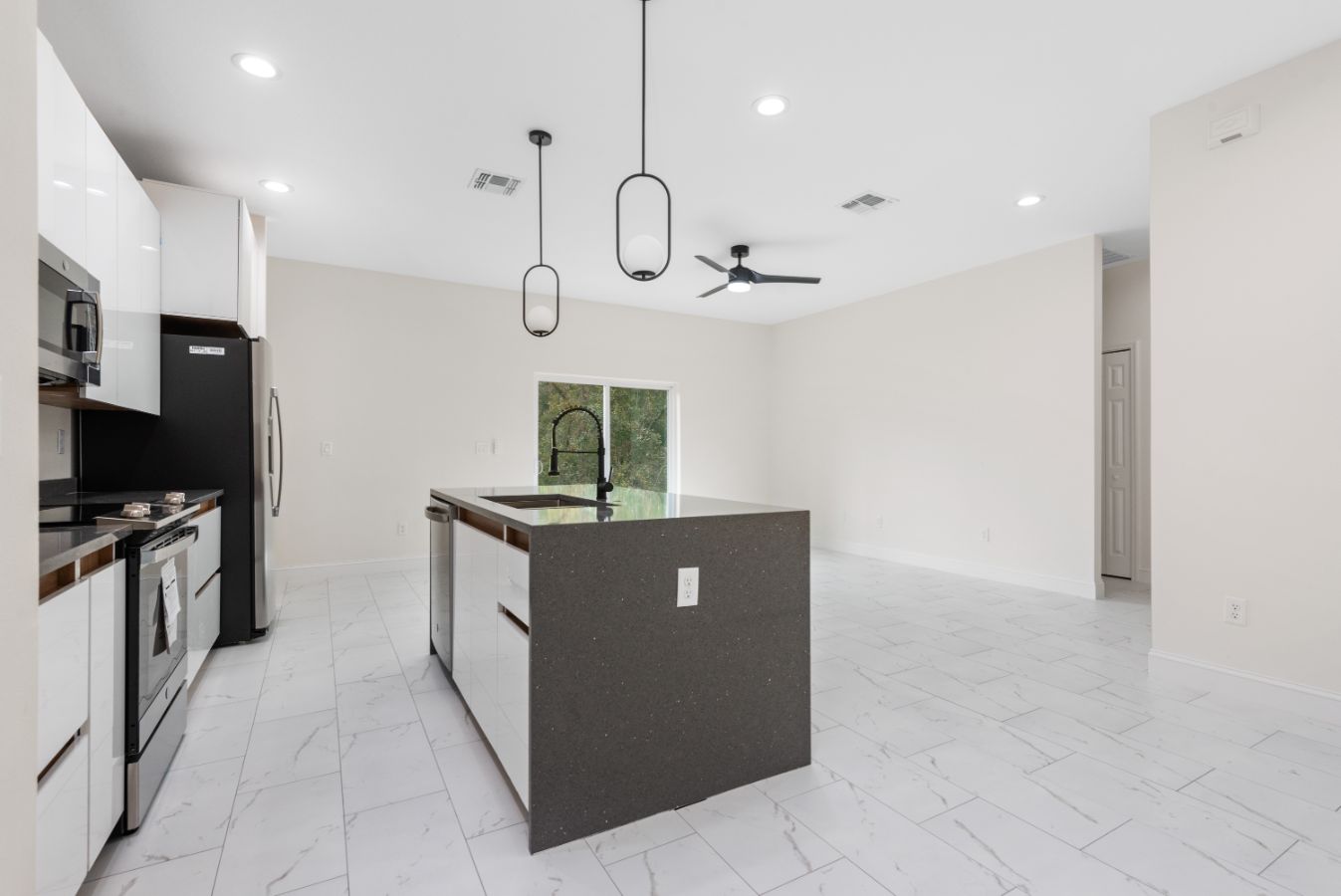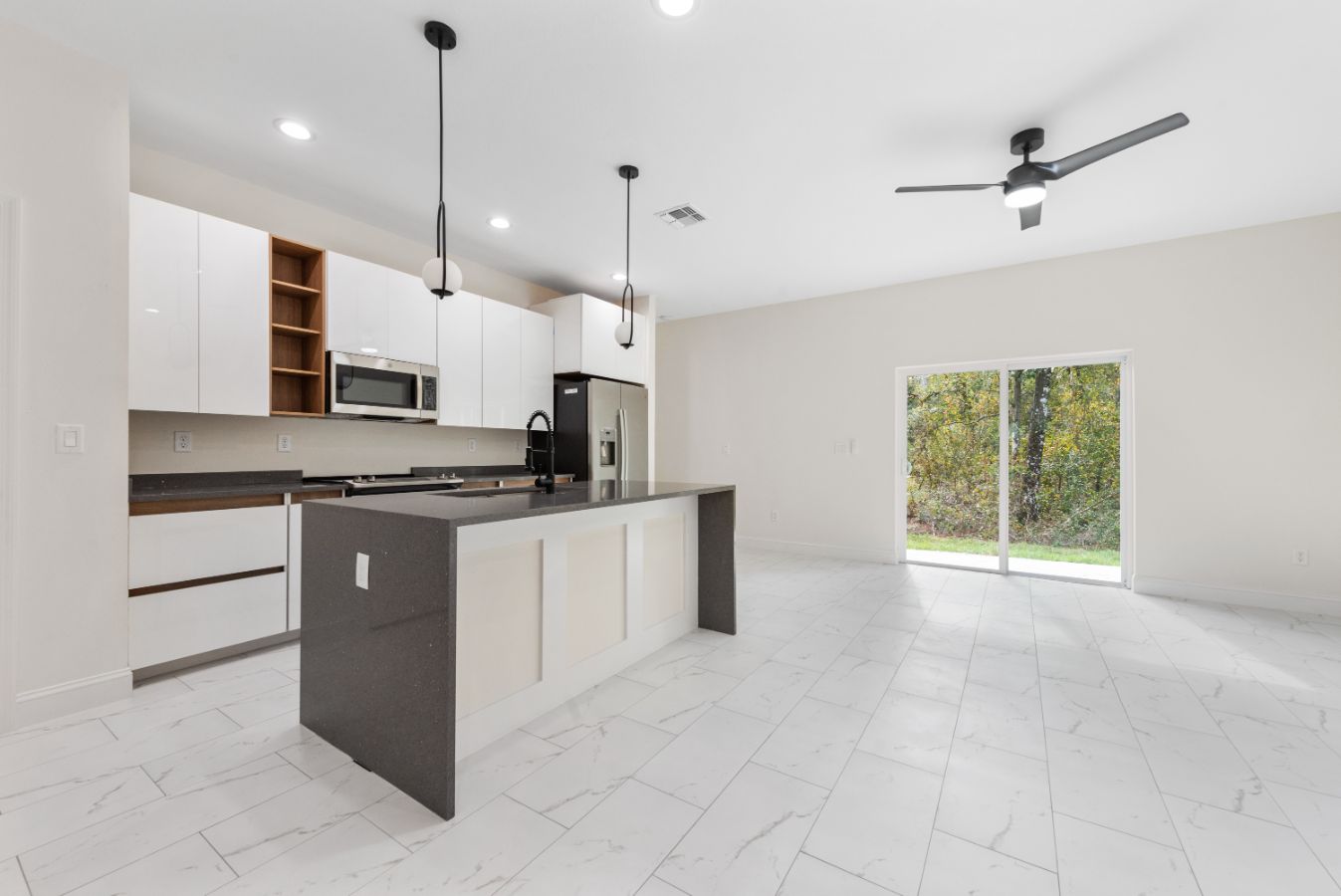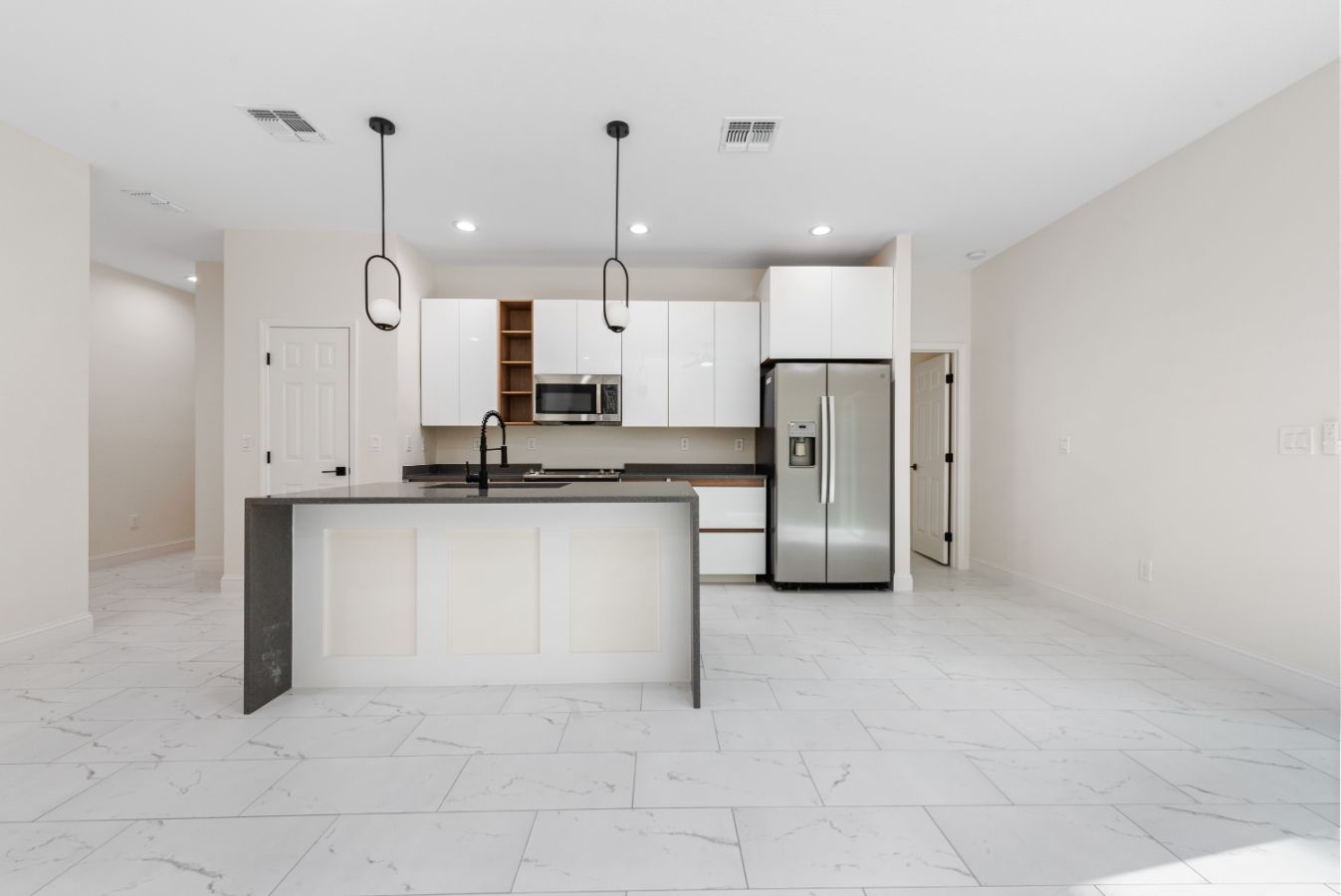 One-floor living at its finest, every detail has been carefully planned with elegance and functionality in mind. This sparkling home offers an aura of modern sophistication. Open Floor Plan along with high Ceilings, and beautiful flooring throughout the entire home.